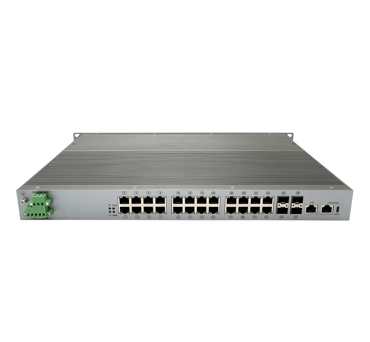 S7100P系列交換機(jī)采用高性能的工業(yè)級芯片和優(yōu)秀的工業(yè)設(shè)計,可在所有端口滿負(fù)載運行下保持線速轉(zhuǎn)發(fā),產(chǎn)品的設(shè)計制造充分考慮了工業(yè)應(yīng)用環(huán)境中的各種惡劣條件和干擾因素,能滿足高低溫、過電壓、漏電及高壓沖擊等各種要求。本系列設(shè)備最多可支持24個POE端口供電,采用全金屬外殼設(shè)計,防護(hù)等級IP40,支持機(jī)架式安裝。適用于石油石化、交通、電力等各個行業(yè)。